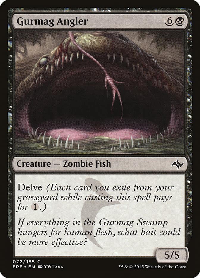 My opponent showed up, we did the dice rolling, I won and took the play. I mulled again (for those keeping track, that’s three of three) and he kept seven. He led on untapped [Card]Watery Grave[/Card] into [Card]Thoughtseize[/Card], which got my juices flowing as I like this matchup very much. I have lots of removal and they have eight threats. He ended up playing [Card]Gurmag Angler[/Card], which I answered with an [Card]Assassin’s Trophy[/Card]. Then he hurt himself to eight and played the deck’s namesake. I cast a [Card]Drown in the Loch[/Card] on it, but he had the [Card]Stubborn Denial[/Card]. I untapped and played a [Card]Dead of Winter[/Card] with many more than enough snow permanents to take out the [Card]Death’s Shadow[/Card]. He eventually played another fish, which I answered with [Card]Snapcaster Mage[/Card], DoW. All this left him at four life with very little he could do and a [Card]Wrenn and Six[/Card] ready to ult on my side. We were off to game two.